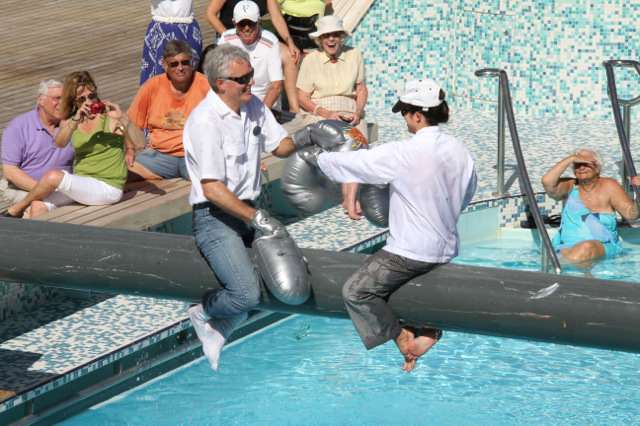 The crew had a great time participating in their own day of competition as well as conducting and judging all events. Their final event was a tug of war between departments and a slippery pole contest which ended with the Hotel Manager’s fall into the pool to rousing cheers and laughter from crew and guests alike.