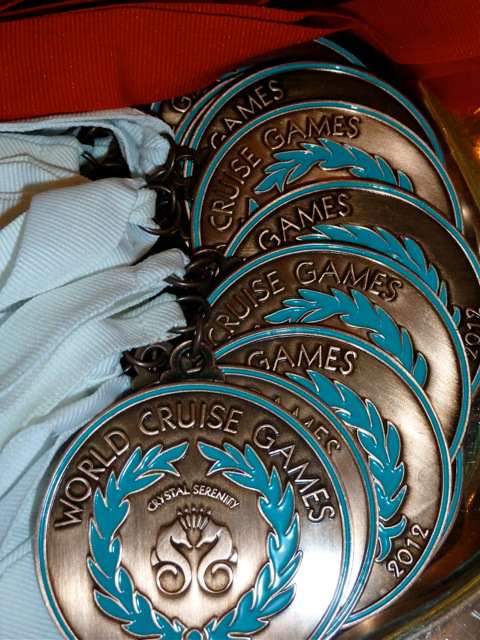 The 17th Annual Crystal World Cruise Games took place aboard the Crystal Serenity. For ten days, competition was fierce in 37 events with 2-4 events each morning and afternoon on sea days. The Crystal World Cruise athletes competed in sports as varied and intense as paddle tennis, basketball, lap swimming, sudoku, golf putting, solitaire, speed walking, cribbage, table tennis, and gin rummy!