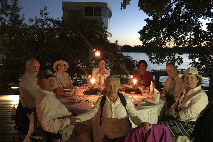 When we returned to the dock, we exited the boat into a magical space—candlelight table settings, flowers, a lovely buffet, a bar, local musicians—all for just our small group. Someone said it looked like a wedding reception. There was dancing and singing, along with the eating and drinking and lots of laughter and good conversation. It was a special evening.