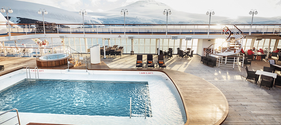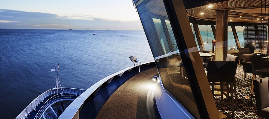 The only downside to the Lounge: there’s no internal connector. To access it, you have to go up the forward stairwell to Deck 9, cross over the open decks between the Zodiacs, and enter the lounge. During my quick voyage, access to the lounge was closed off during high winds and heavy seas. That’s not an issue in the Mediterranean, but the Drake Passage is another story.
