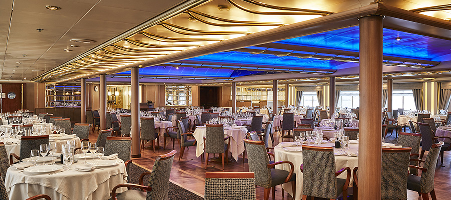 New flatware and stemware complement the room’s spruced-up look, which still comes off as one of the nicest dining spaces in the Silversea fleet thanks to its vaulted ceiling and elegant mood lighting.
