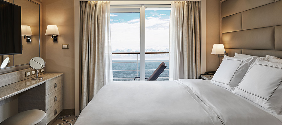 Throughout, staterooms feature new wall treatments, lighting options, switches, power outlets (including two new USB plugs), iHome docking stations with Bluetooth capability, new telephones, all-new furniture, and a new Samsung flat-panel television plugged into the ship’s video-on-demand system.