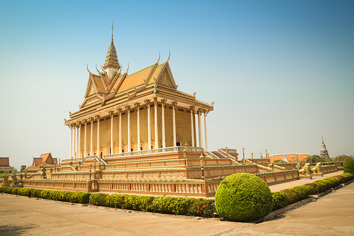 Explore remote villages with guided walking tours, where area experts will show you the highlights while entrancing you with intricate knowledge of the captivating history. Observe skilled artisans practicing their trades, such as the silversmiths of Koh Chen or the Khmer artisans weaving kroma–Cambodian garments–and dyeing them in an array of mesmerizing colors. Visit awe-inducing spiritual sites like Vipassana Dhura Mandala, then explore Phnom Penh aboard a motorized tuk-tuk.