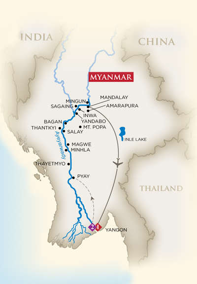 Though it is unlikely to mean much to the traveler visiting Myanmar for the first time, the itinerary is clearly an ambitious one, with calls made to Minhla, MaGwe, Salay, Tant Kyi Taung, Bagan, Yandabo, Inwa, Saigaing, and Minguin. Following disembarkation in Mandalay, guests will return to Yangon for a one night post-cruise hotel stay before beginning their onward journeys home.