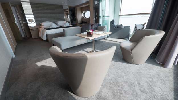 Both the Royal Suite and the Royal Panorama Suite offer €100 per person credit in the Wellness Center along with other perks such as private chauffeur service at Amsterdam, Budapest, Bucharest, Basel and Nuremberg airports.