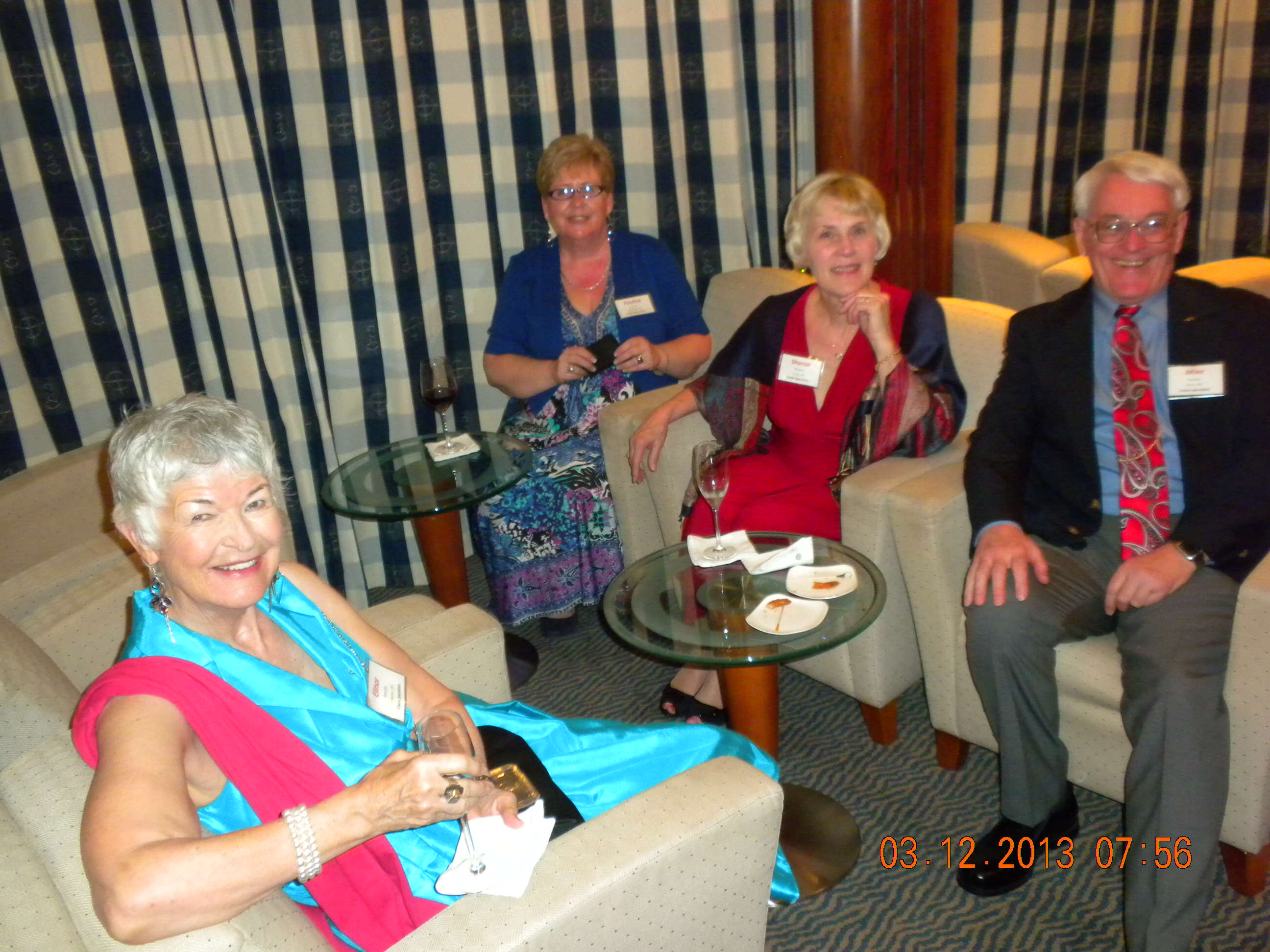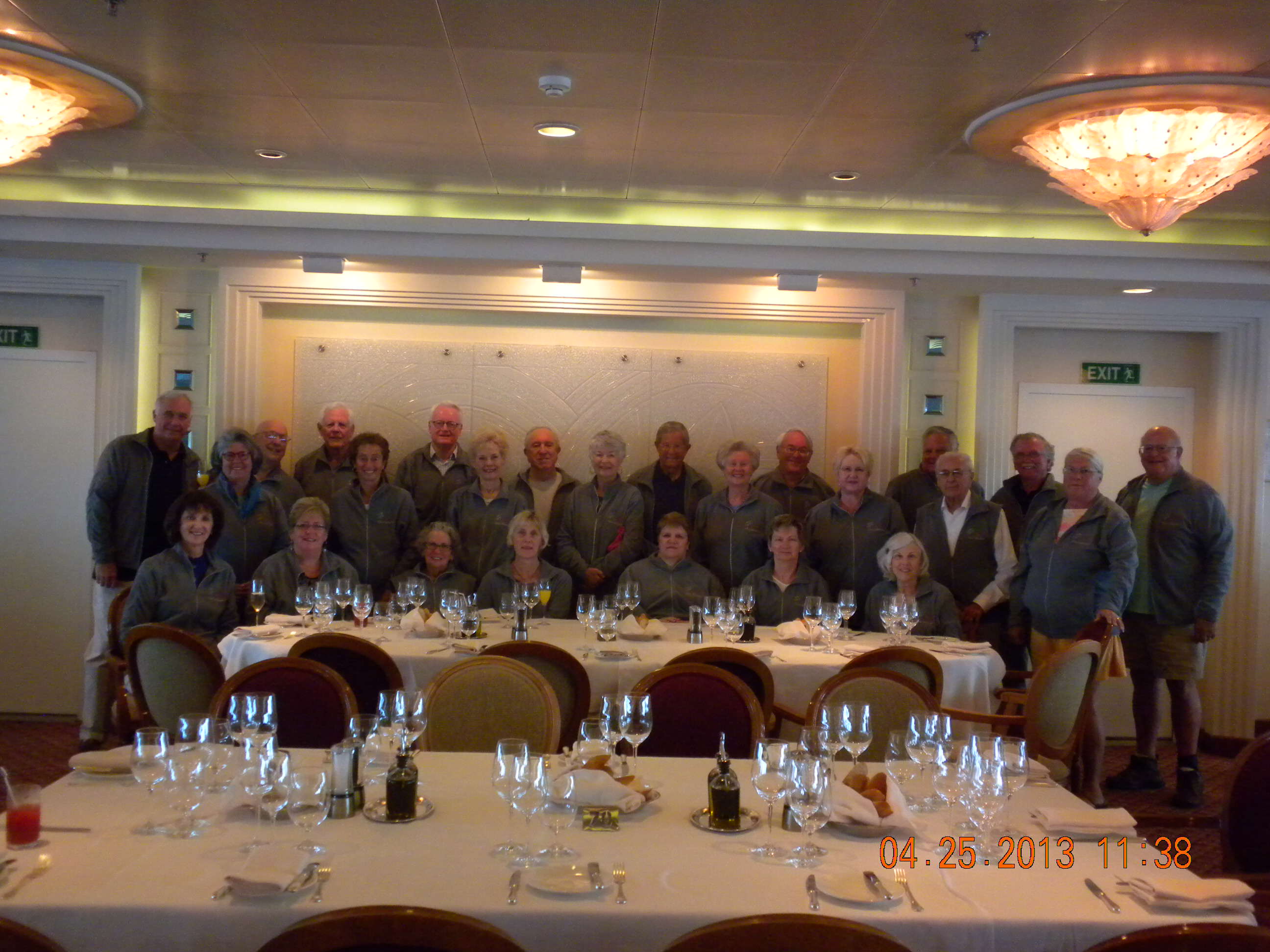 At the end of the world cruise journey, our Cruise Specialists group enjoyed a great “farewell” luncheon –with their jackets, and their Captain stopped by to pay his respects as well. What a wonderful and compatible group to sail around the world with as well as a team of officers that go out of their way to please.