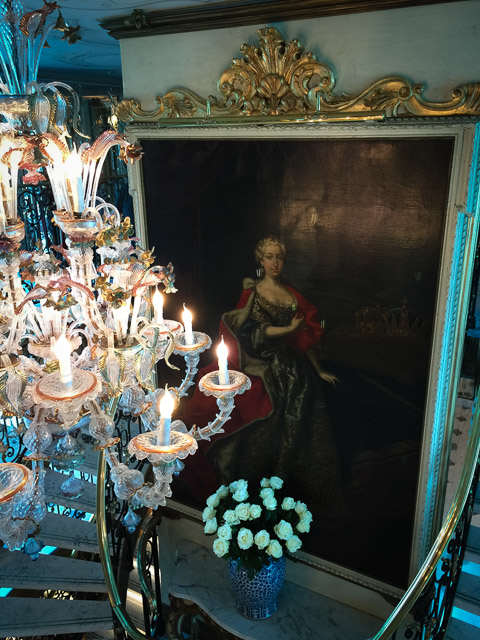 The tiered lobby is dominated by a sweeping marble staircase with a wrought-iron, hand-gilded balustrade, and royal crown detailing. The focal point of the grand entrance way is a regal ten-foot high original oil on canvas painting of the beloved ruler of the Habsburg Empire, who reigned as the only female ruler of the dynasty from 1740 to 1780.