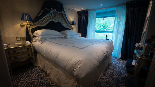 The king-sized handcrafted canopy Savoir of England bed is among the most comfortable beds I’ve ever slept on, with crisp high-thread-count Egyptian linens that are a delight to sandwich in between.